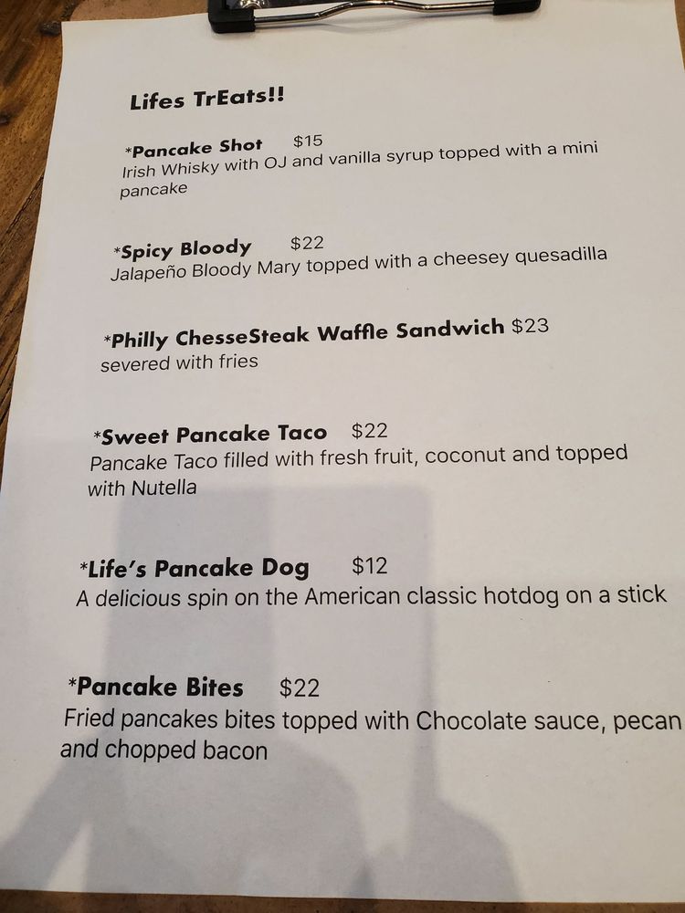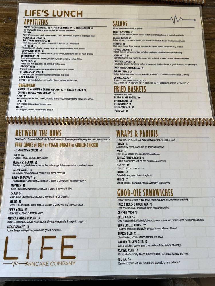 Life Pancake Company, located in Jersey City, offers a diverse menu full of delicious pancake creations, waffles, and breakfast wraps. With a focus on pancakes, their offerings include unique dishes like the Apple Peanut Butter Pancake and the Avocado Bacon Pancake. The Breakfast Belgian Waffles are also a standout, with options like the Banana Walnut Belgian Waffle and the Chocolate Lover Belgian Waffle. Customers rave about the quality of food, with one reviewer mentioning the great bacon and yummy curly fries. The ambiance is welcoming and the service is excellent, making it a go-to spot for a satisfying breakfast or brunch. Whether you're craving sweet or savory, Life Pancake Company has something for everyone to enjoy.